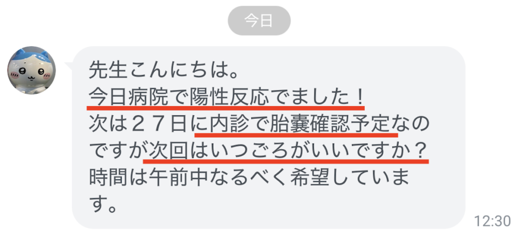 メールで胚移植に向けた施術のタイミングをご案内しましたが