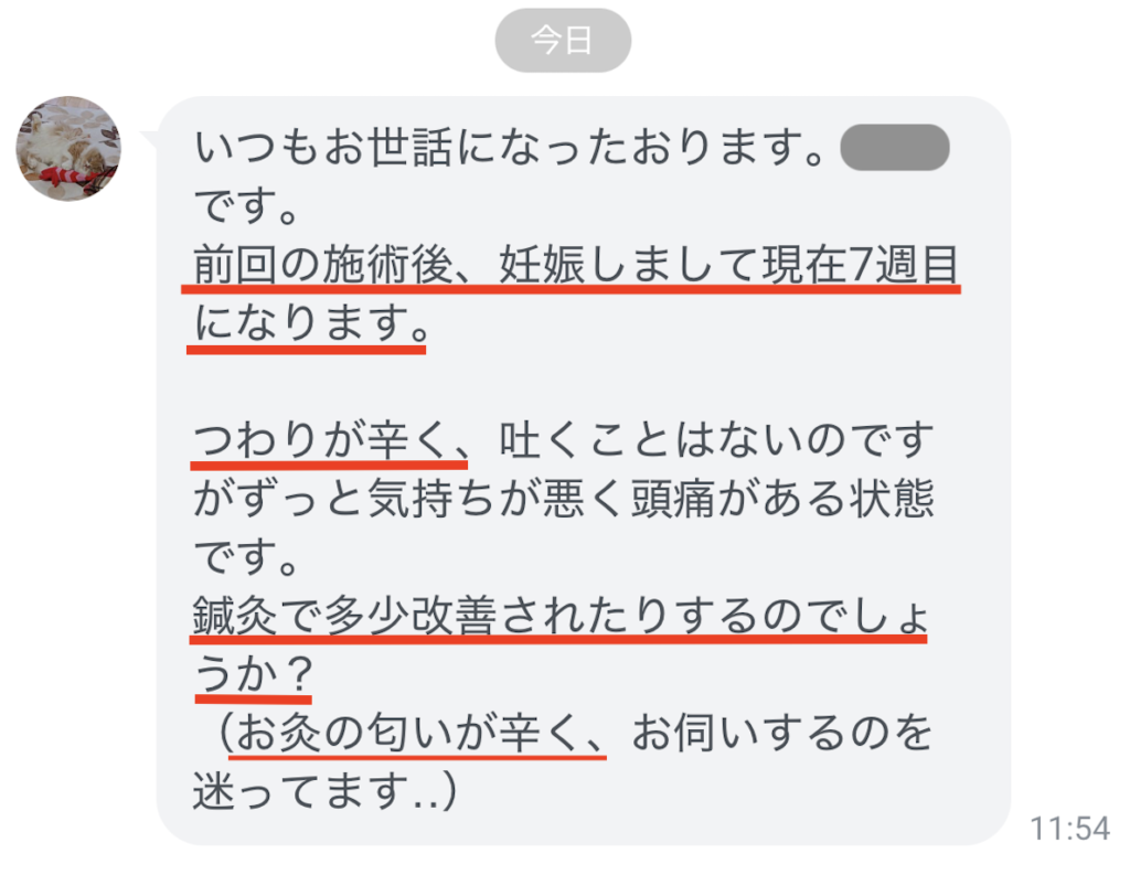 「前回の施術後、妊娠しまして現在7週目になります。」