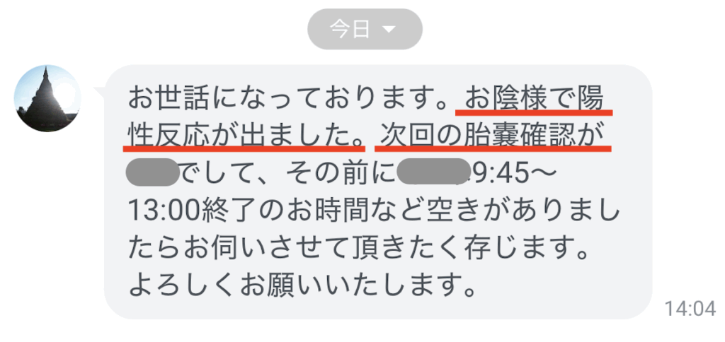 「お陰様で陽性反応が出ました。次回の胎嚢確認が・・・」