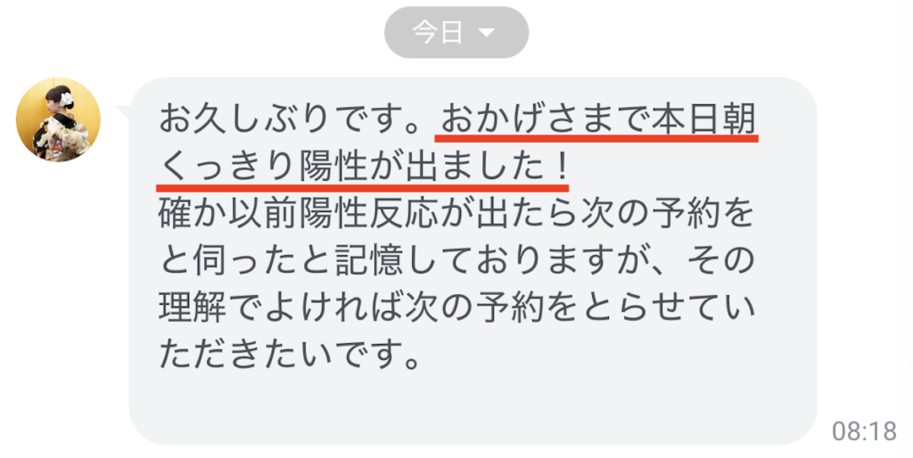 「おかげさまで本日朝くっきり陽性が出ました!」
