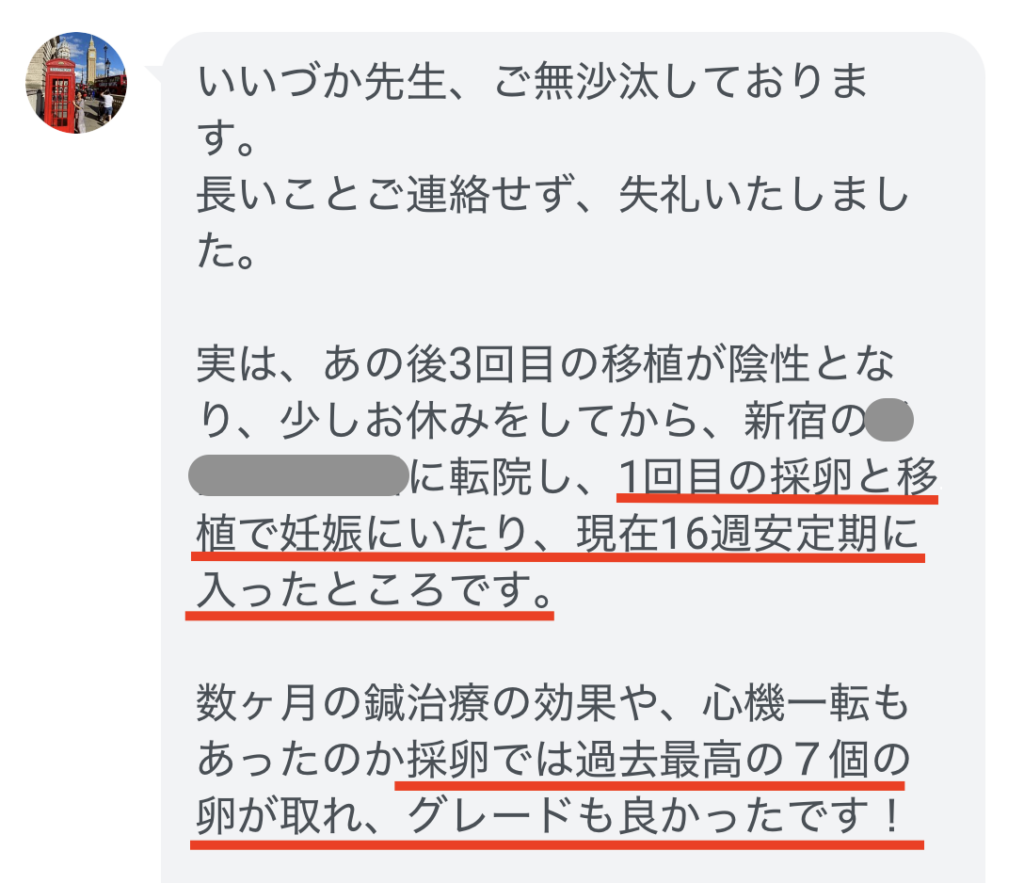 妊娠報告「採卵では過去最高の7個の卵が取れ、グレードも良かったです!」