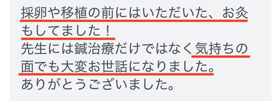 「採卵や移植の前にはいただいた、お灸もしてました!」