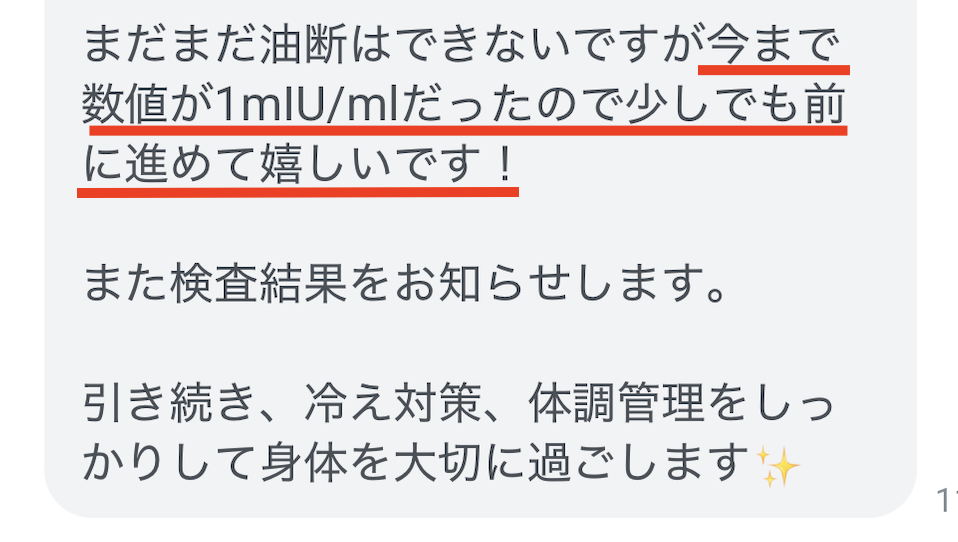 「今まで数値が1mlU/mlだったので少しでも前に進めて嬉しいです!」